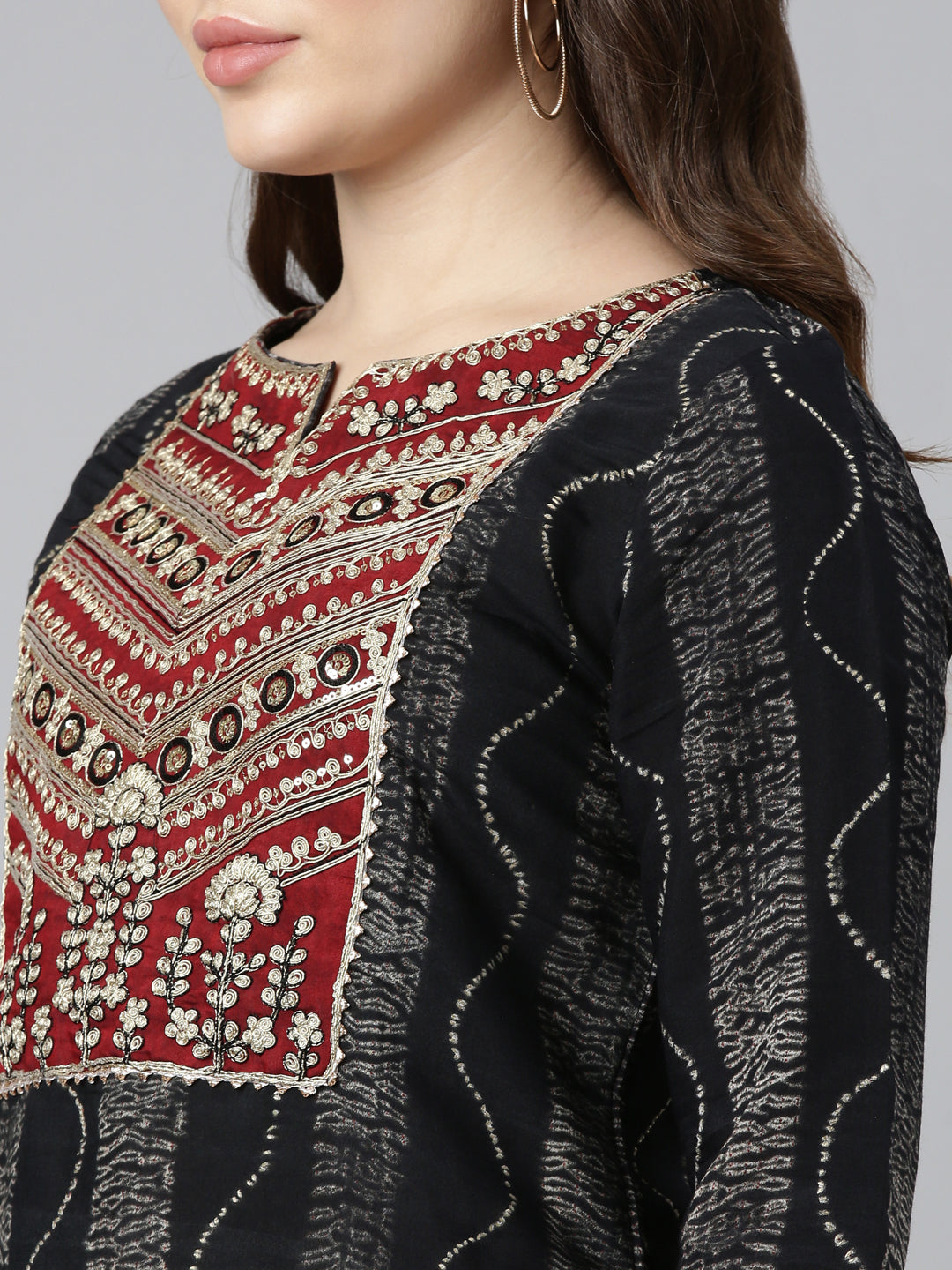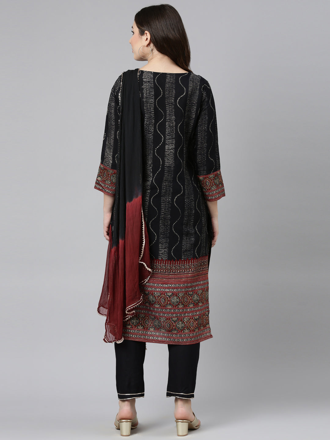 Neeru's Black Regular Straight Printed Readymade Suit An Ensemble Fit For A Queen Look Divinely Chic In This Colorblock Combo, Complete With Chic Trousers And A Dupatta For An Extra Dose Of Sophistication.