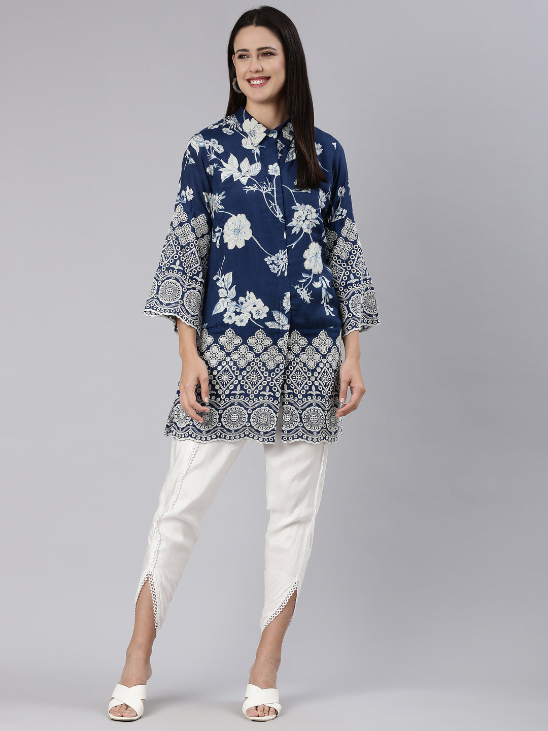 Experience The Luxurious Design And Sophistication Of Neeru's Blue Regular Straight Printed Kurta And Trousers. Crafted With Timeless Elegance And Graceful Detail, This Ensemble Is Sure To Elevate Any Look.