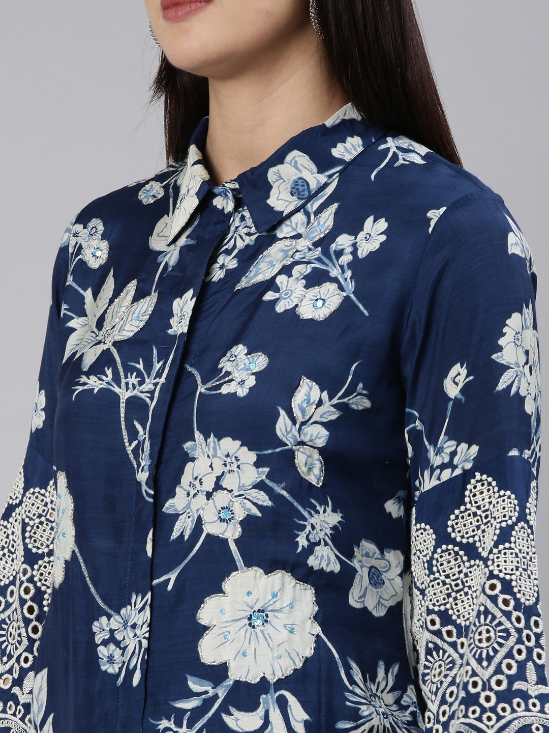 Neeru's Blue Regular Straight Printed Kurta And Trousers