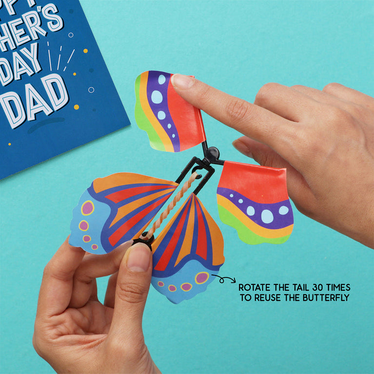 For the dad who’s more giggles than grumbles, this combo is the perfect mix of fun and feels. The Butterfly Card surprises with a flying Crafted butterfly and a heartfelt message inside. Paired with a stylish “Best Dad in the World” Table Top, it’s a gift that makes him smile every single day. Quirky, thoughtful, and adorably unexpected — just like your dad!Specifications:Size of the card – 12 x 17 cmSize of the Table Top - 15 x 15 cm🦋 Butterfly Note:The card has to be opened with a mild jerk for best results. Sometimes, the butterfly tends to get tired during the shipment journey. If possible, we request you to open the card when you receive it and twist the butterfly’s tail the same way you rotate a key to recharge it. Once you’ve completed the motion 40-50 times, place it inside the card and close it.