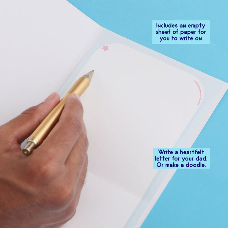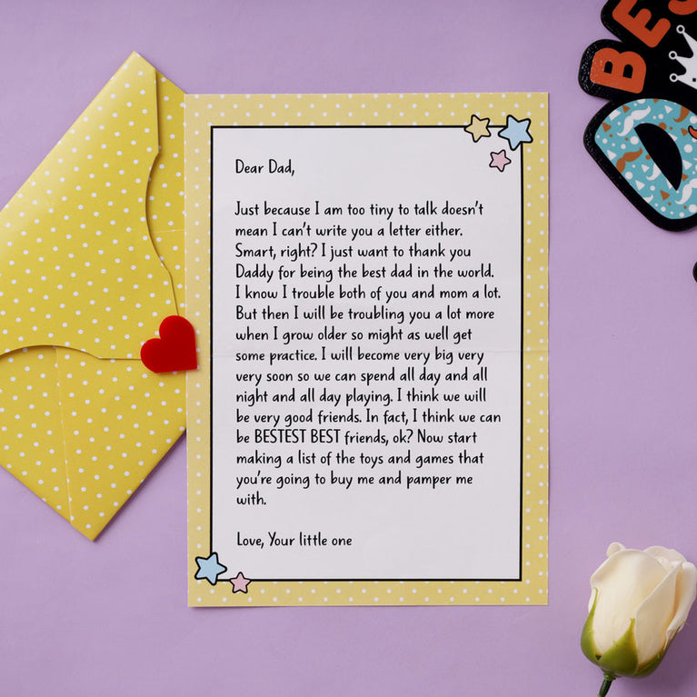 Tell your dad just how much he means to you with a combo that’s as thoughtful as it is fun. Start with the “Dear Dad” Letter Card — perfect for pouring your heart out in a handwritten note. Add in the “Super Dad” Keychain to remind him of his superhero status wherever he goes, and complete the gift with a “You Are My Champion Dad” Mug for his daily dose of love with every sip. It’s the ultimate Father’s Day trio, crafted for the world’s best dad.Specifications:Size of the Card -12.5 x 17.7 cmSize of the Letter Insert - 11.7 x 25 cmKeychain Material - AcrylicKeychain Size - 5 x 5 cmMug Capacity - 330 mlMug Material - Ceramic, Microwave Safe