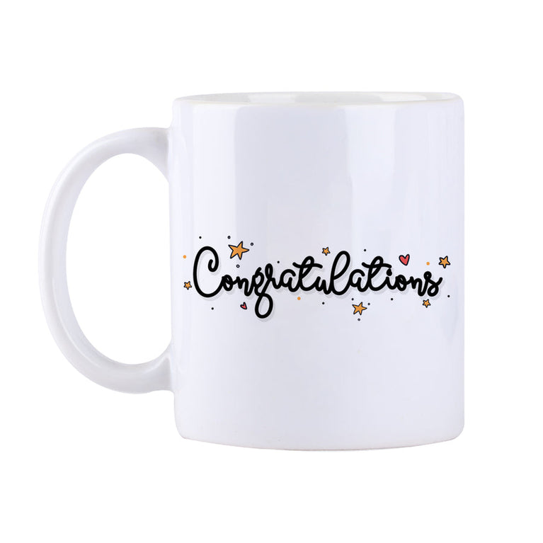 New job? Big win? Dream come true? This mug is made to say “Yay, you did it!” It is perfect for celebrating life’s little victories.Specifications:Capacity of the Mug - 330mlMaterial - CeramicThe mug is microwave safe.Content on the Mug - Congratulations