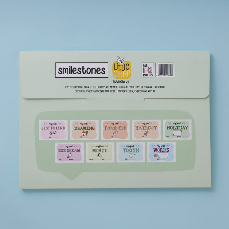 Introducing Smilestones - a set of 9 placards, each celebrating a special milestone of your baby. From their first tooth to their first movie, each placard has space to jot down the date and mark every moment with love and joy. These placards are perfect for documenting your baby’s sweet milestones and creating memories that last a lifetime.