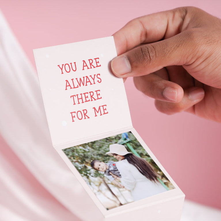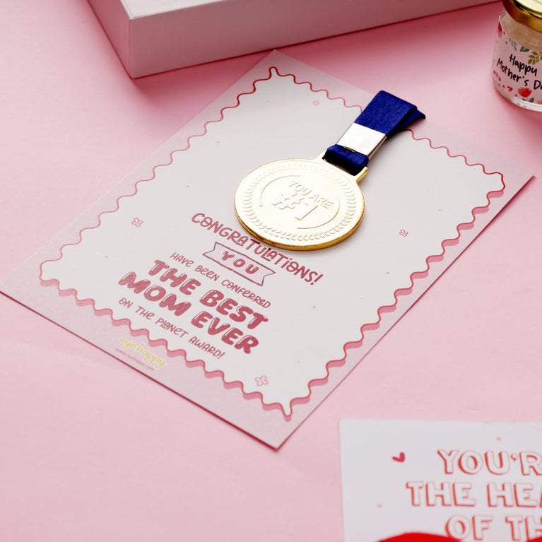 Becoming a mom changes everything - this hamper captures those first beautiful moments. Right on top of the hamper, a dialogue box pops open with 3 sweet messages and 3 photos to make her smile (and maybe cry a little too). A thoughtful start for a surprise made just for new moms.Further, the hamper includes the following gifts: Letter from the Baby - Imagine the look on her face when she reads a letter from her own baby! Approved by new mothers, the letter has been crafted to make her smile, cry and melt like a slab of butter.Pocket Hug Card - New moms deserve the cutest and coziest hugs. Give a new mom a hug that fits in her pocket (and her heart). And, when you can’t be there to hug her, this heart-shaped hug will do the trick. It’s tiny, adorable, and full of cuteness. And, it also comes with a card that has a sweet message for new moms.A Sash - Mothers are the real stars! Make her feel like one with this adorable world's best mom sash.Medal with Certificate - Moms deserve all the appreciation in the world for everything they do. Give a new mom the ultimate compliment with a certificate and a medal (yes, a real medal) that certifies her as the Best Mom Ever.Window Frame For New Moms - For the new mom who’s giving it her all! An adorable window frame that is customisable with the new mom's favorite picture.Candle Diffuser - For the late nights and early mornings - let the fragrance do the soothing. Designed specially for the new mom life.Specifications:Hamper Box size- 18.2 x 18.2 cmsLetter from Baby- 16 x 11.5 cmsDiffuser- 6 x 5.5 cmsBest Mom Medal card- 12.3 x 17.5 cmsHeart of the Family Card- 15 x 11 cmsPhoto Calendar window type frame- 10.1 x 10.1 cms