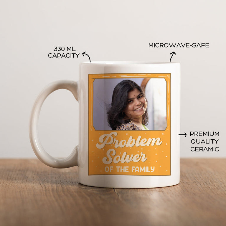Every family has that one genius who fixes it all - and this mug is made just for them! And the best part? You can add their photo to the mug to make it even more special.Specifications :Capacity of the Mug - 330mlContent on the Mug - Problem Solver of the Family.