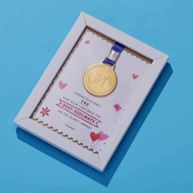 Your Valentine deserves all the appreciation in this world for being the sweetest and cutest (and also putting up with you 😛). Give your special someone the ultimate compliment with our Valentine Medal Frame. This adorable Frame comes with a medal (yes, a real medal) that certifies your partner as the bestest. Go ahead, make their day!Content on the Frame - Excellent. Highly Recommended. Will celebrate the next Valentine and a million other Valentine’s Day together.Specifications: Size of the Frame : 12.5 x 17.5 cms