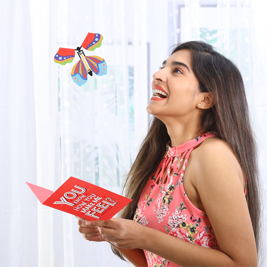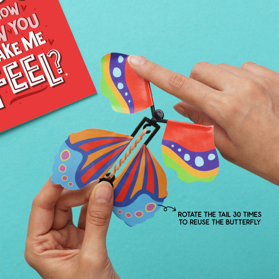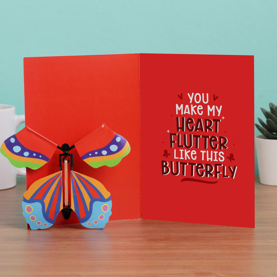 The Aww-dorable Butterfly Card – A greeting card that literally flutters! Open it with a gentle jerk and a surprise butterfly bursts out, making your special someone smile, scream, or both. The card reads:
