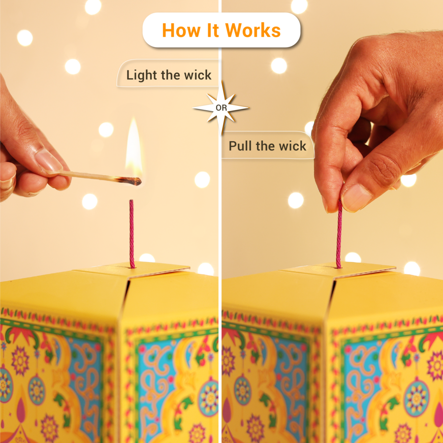 Introducing India’s First Patakha Box — a one-of-a-kind festive surprise that looks like a cracker but opens up as a magical hamper. It’s designed to give you the joy of lighting something special without any noise, or pollution.