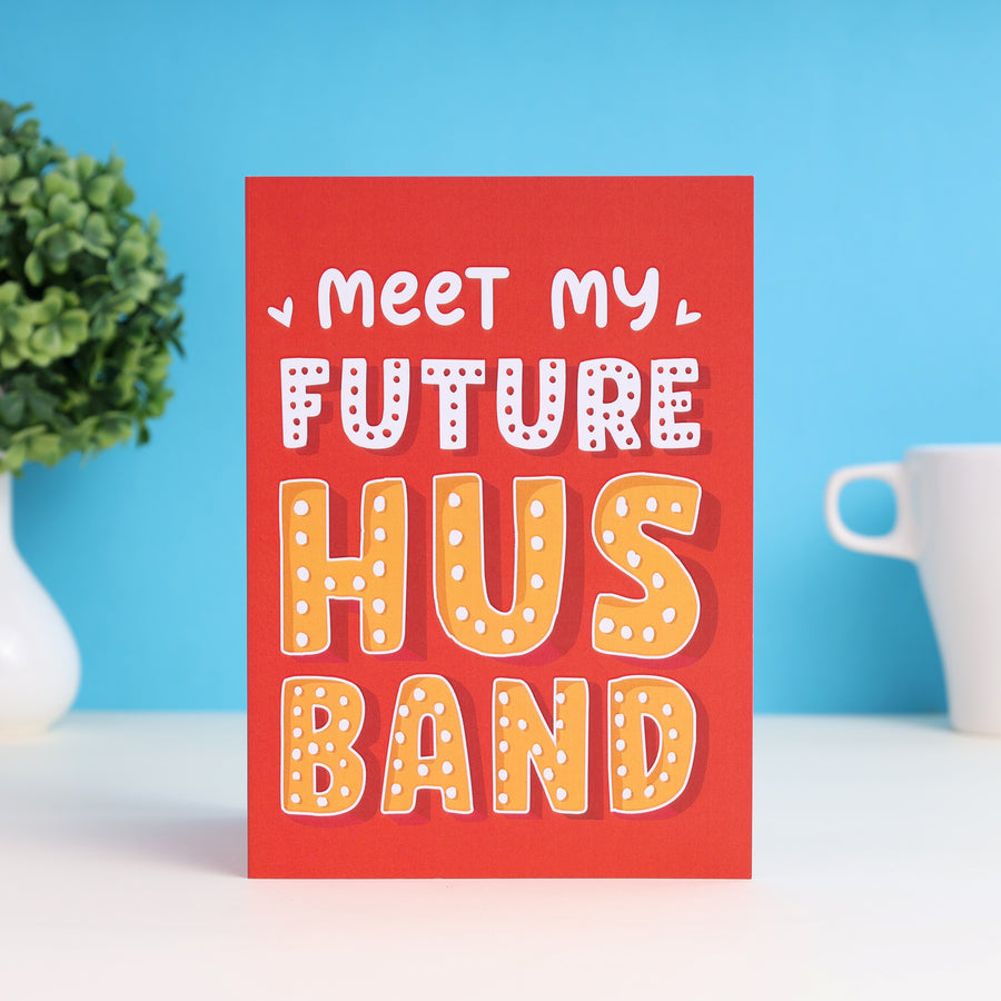 Front: The card boldly declares your love and commitment with the fun, engaging message: " *MEET MY FUTURE HUSBAND* "