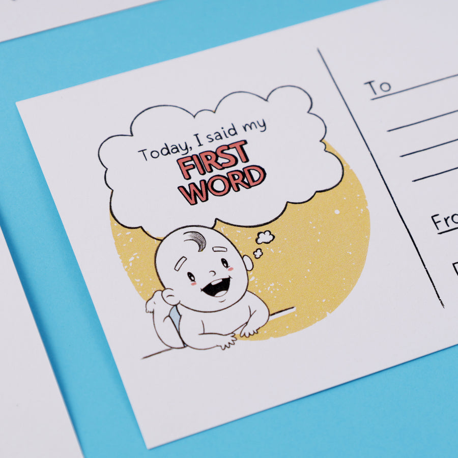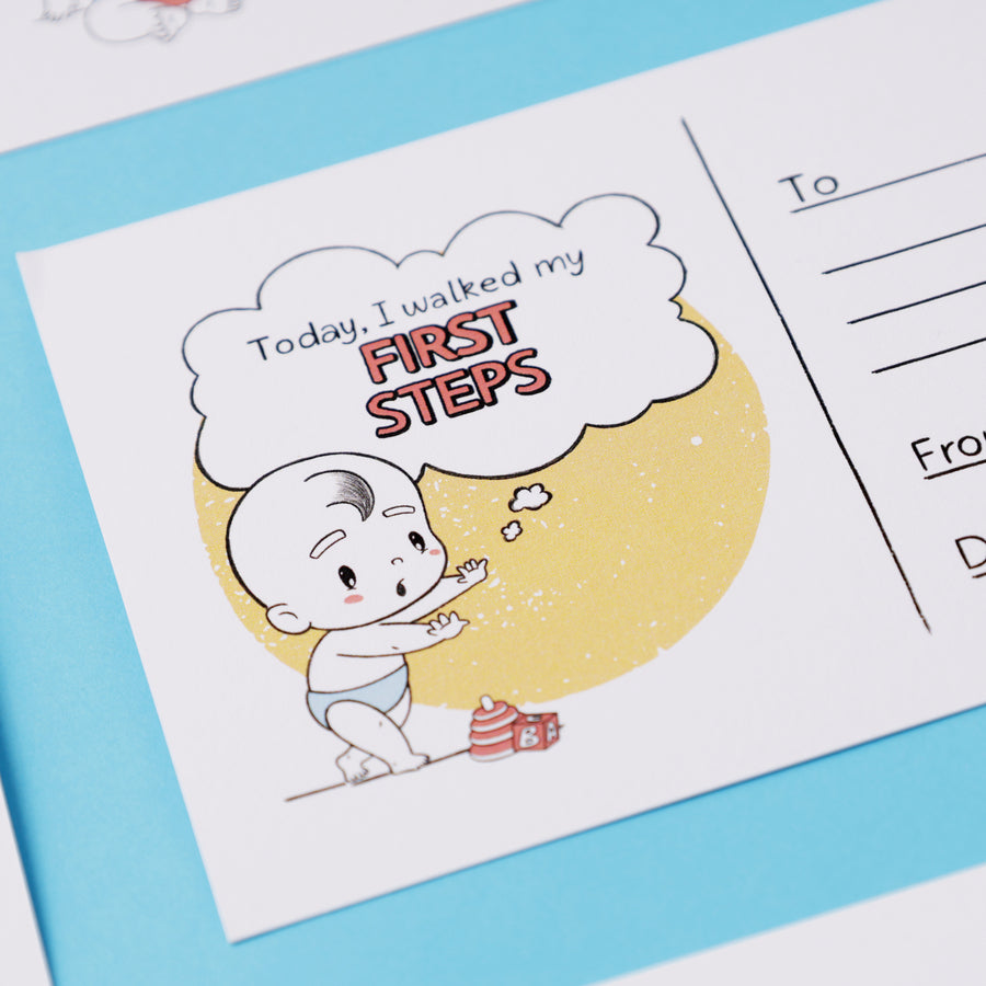 From first words to first steps, this set of 15 “Postcards for My Little One” is a heartwarming way to capture your baby's every special milestone. With cute baby illustrations and adorable messages like “Today I walked my first steps” or “Today I called you mumma for the first time”, you can document all of your baby’s special moments.