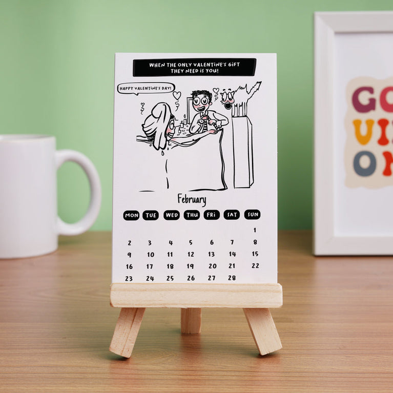 If you and your partner love celebrating the little things, this calendar fits right in. Each month shows a moment that looks exactly like something you two have done - or will do. Gift it to your partner to make them smile all year long. Or surprise the most adorable couple you know and make their new year special.Specifications-Size of the Easel : 4.5 x 3.5 inchesSize of Cards : Size : 3.4 x 5 inches