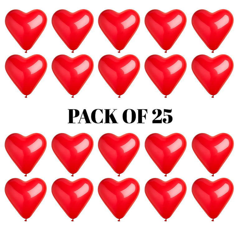 Celebrate love in style with these classic Red Heart-shaped balloons! Perfect for anniversaries, proposals, weddings, romantic dinners, and Valentine’s Day – these balloons set the mood for any special occasion.Use air to create romantic arches, garlands, balloon walls, or elegant table centerpieces. Made from thick, high-quality rubber, these balloons are durable, burst-resistant, and ideal for both indoor and outdoor decor.Specifications:Number of Balloons - 25Material - RubberShape - Heart