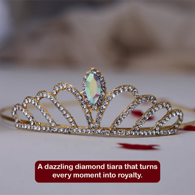 Add a royal touch to your celebrations with this elegant Diamond Crown! Perfect for weddings, parties, proms, or beauty pageants, this tiara elevates any look and makes you feel like a true queen.Crafted from premium-quality materials, it’s durable, stylish, and designed to complement gowns, dresses, and traditional outfits.Specifications:Size of the Crown - 10 x 8 x 6 cm