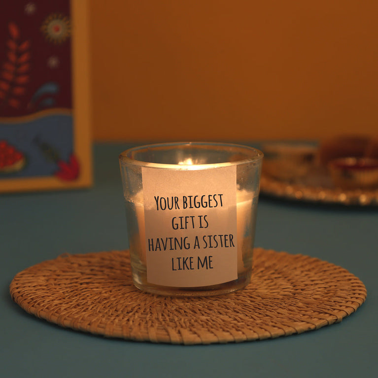 This candle smells nice, looks cute, and says what every sister secretly believes. A simple, funny gift for Rakhi that’s sure to get a smile (and maybe an eye-roll).Specifications:Size of the Candle - 5.5 x 5.5 cms