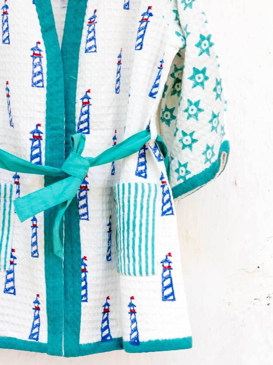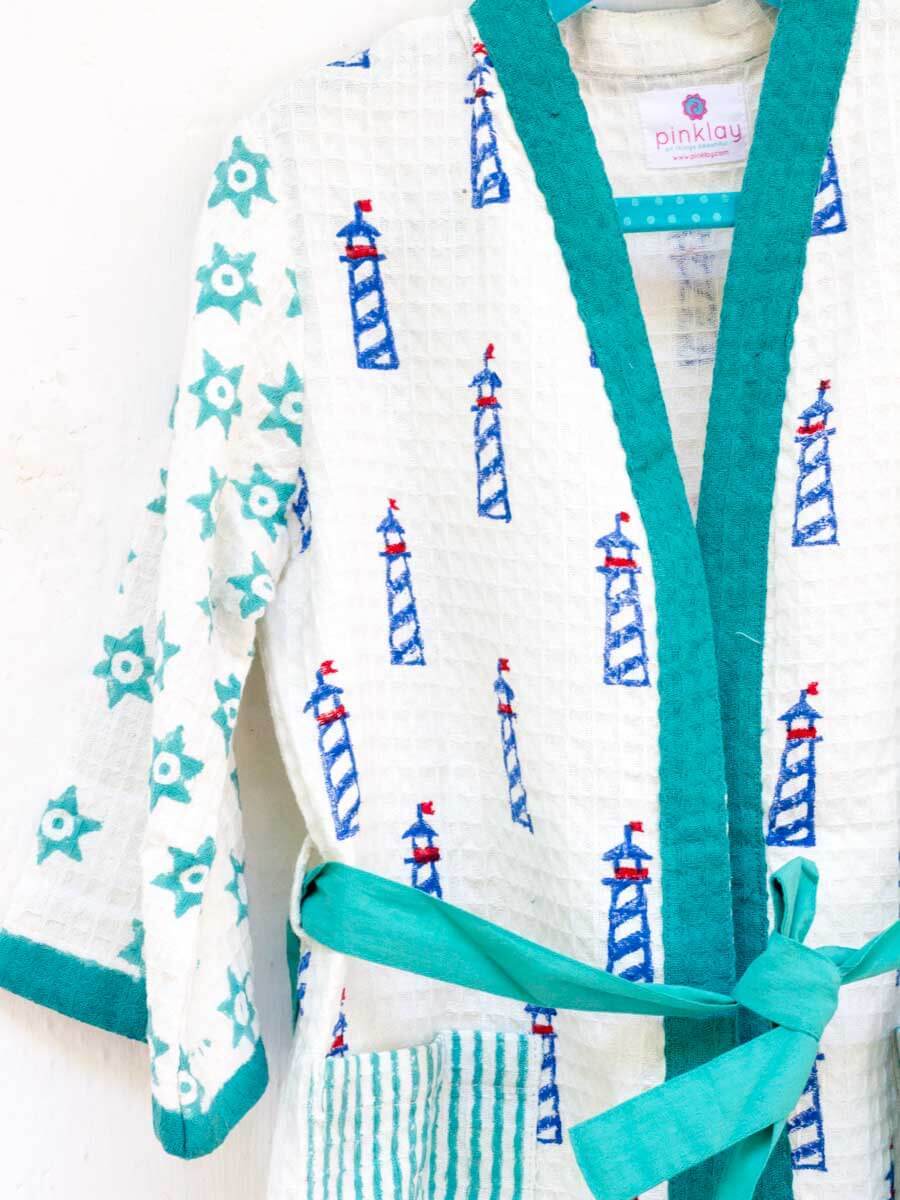 Lighthouse Magic Block Printed Waffle Cotton Bath Robe
