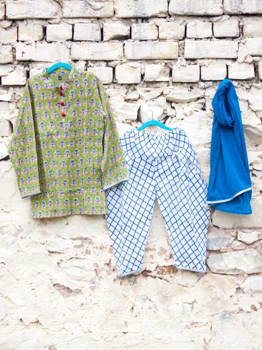 Presenting beautiful ensembles for our little customers. Keeping true to our style and quality commitment, each piece is handcrafted in high-quality cotton silk and certified organic cotton. Hand block printed with traditional butis, embellished with fine lace and designed to be super comfortable; our festive collection makes kids sparkle!