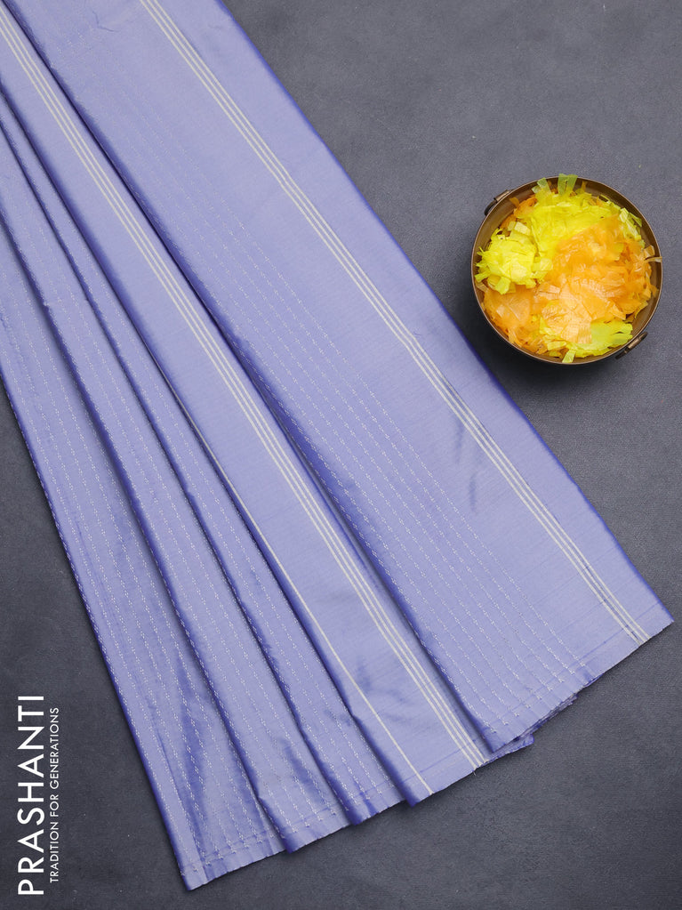 Arani semi silk saree bluish grey with allover silver zari weaves in borderless style
