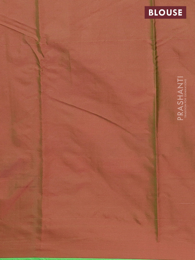 Arani semi silk saree mango yellow and dual shade of green with copper zari woven buttas and copper zari woven butta border