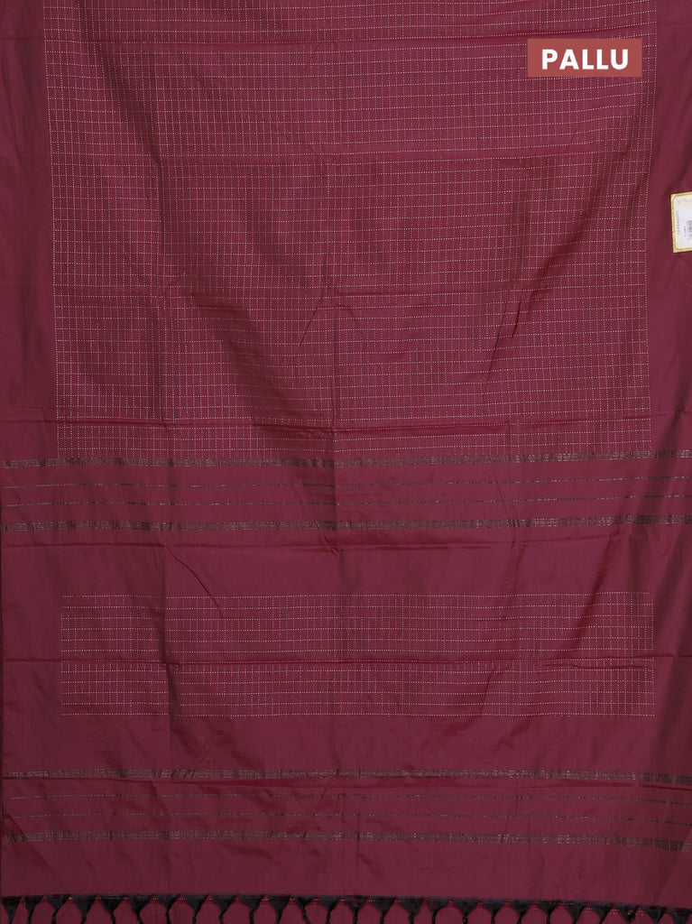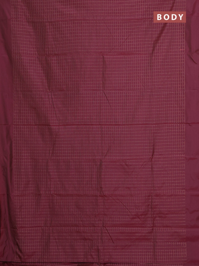Arani semi silk saree maroon with allover copper zari woven checks in borderless style