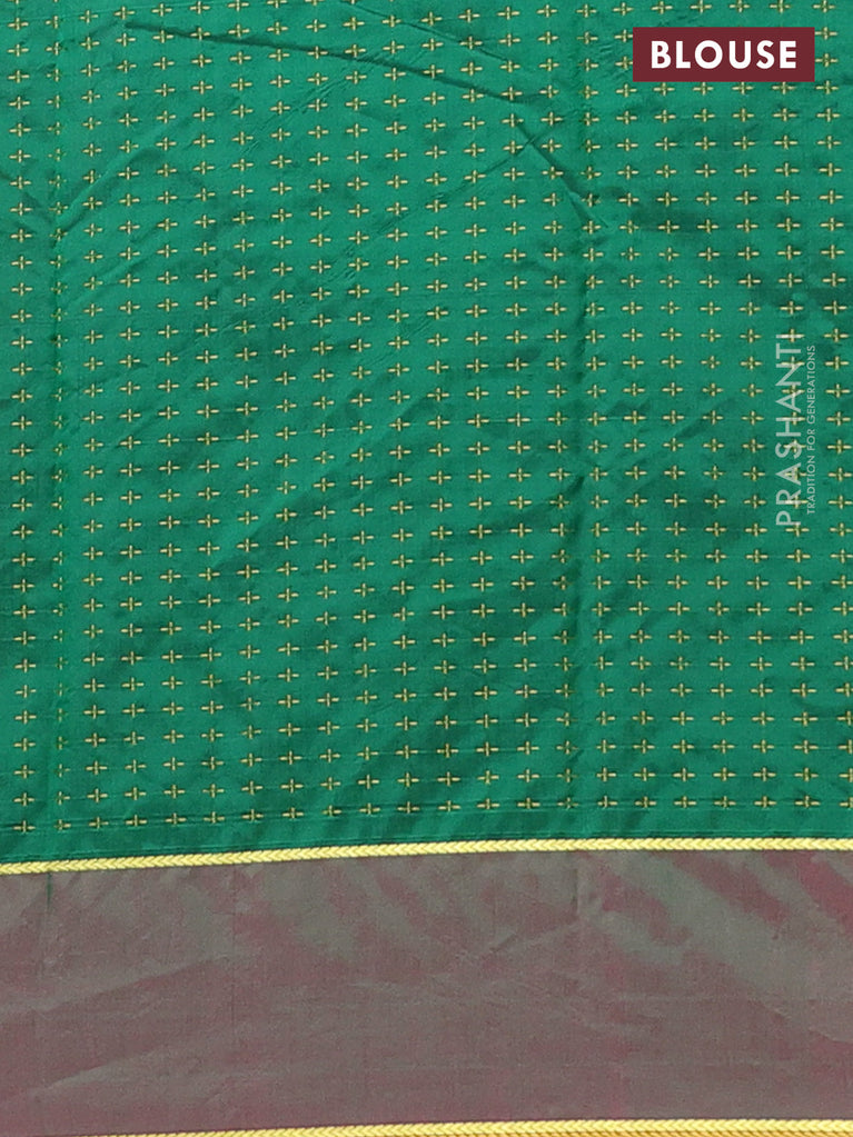 Arani semi silk saree maroon and green with thread woven buttas and piping border