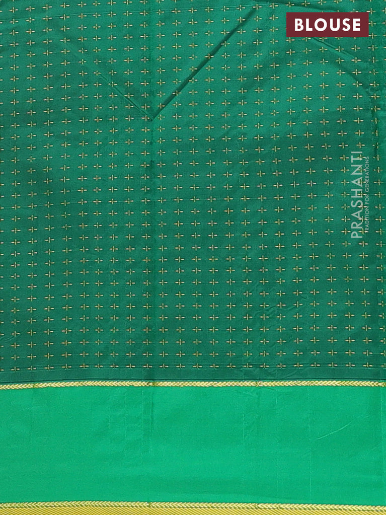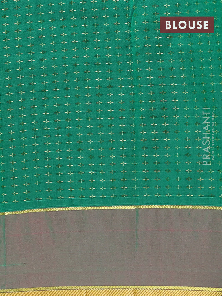 Arani semi silk saree manthulir green with allover silver zari weaves in borderless style
