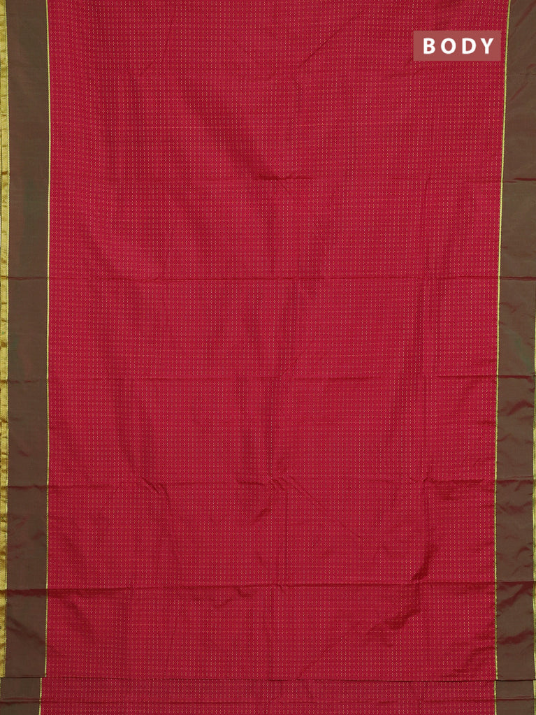 Arani semi silk saree magenta pink with copper zari woven buttas in borderless style