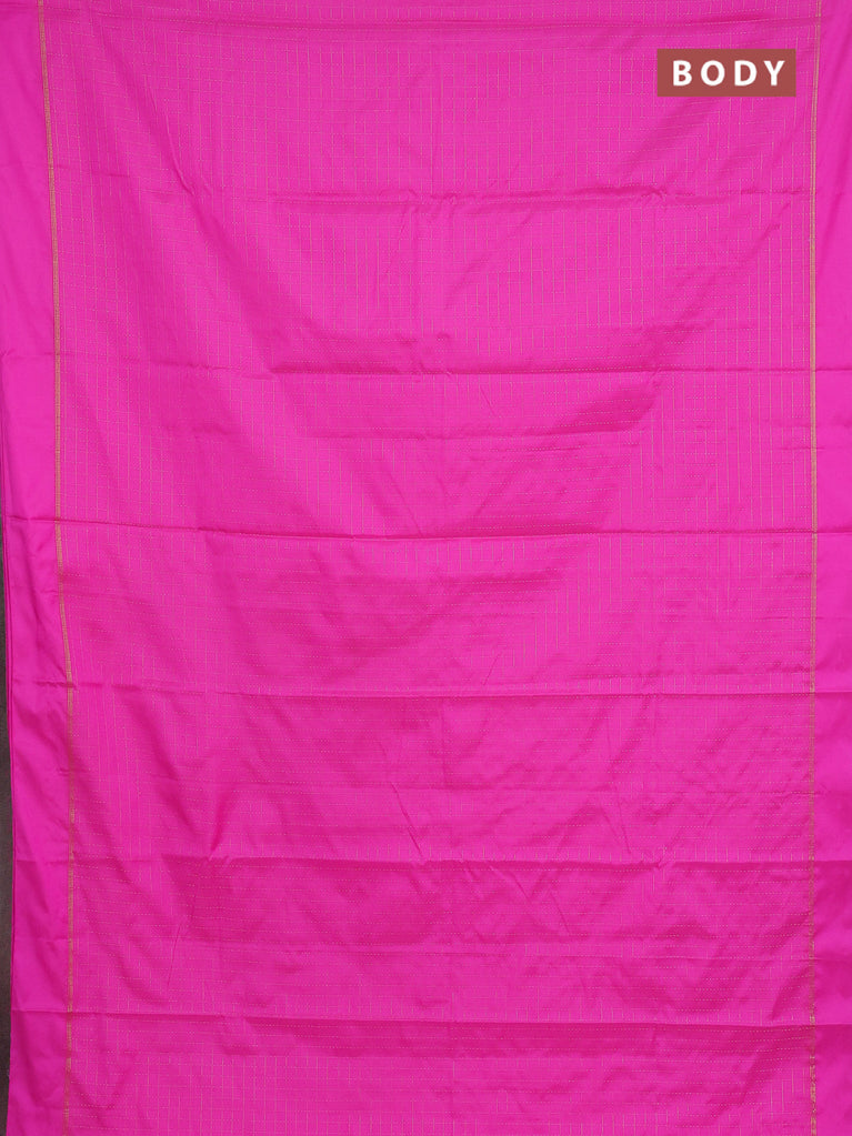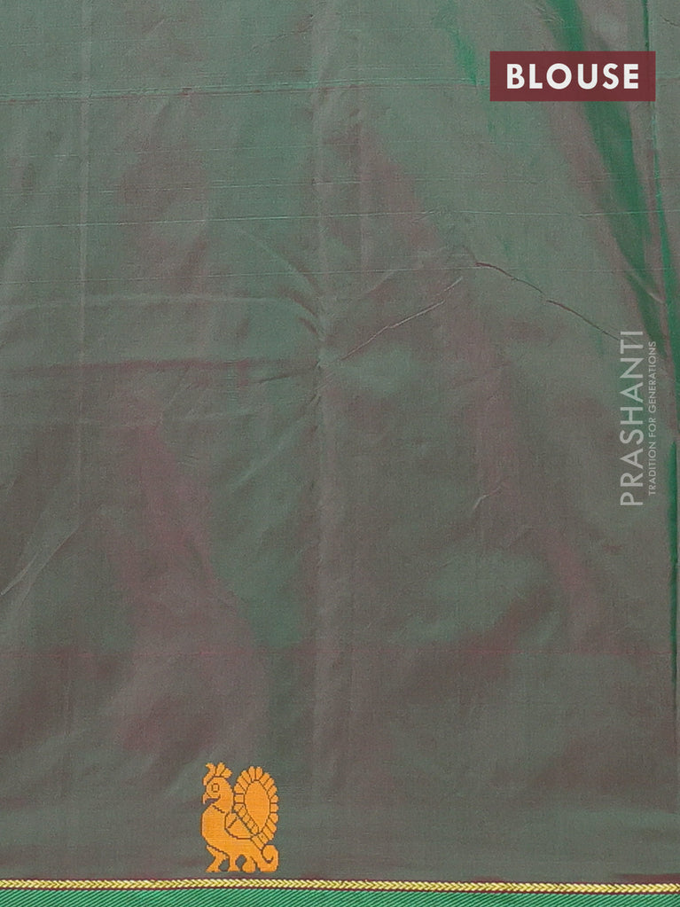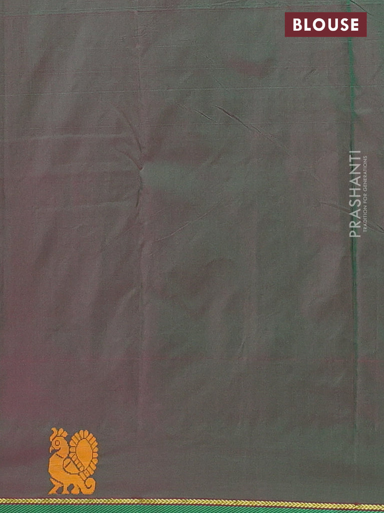 Arani semi silk saree pink and dual shade of green with allover copper zari checked pattern and copper zari woven simple border