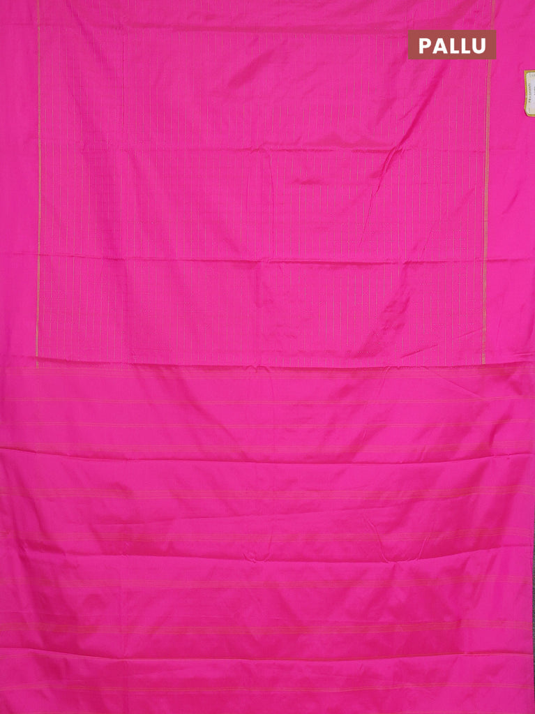 Arani semi silk saree pink and green with allover thread weaves and rettapet zari woven border`