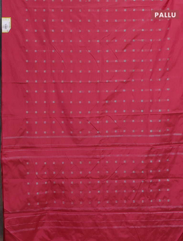 Arani semi silk saree pink with allover silver zari weaves in borderless style