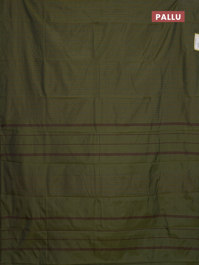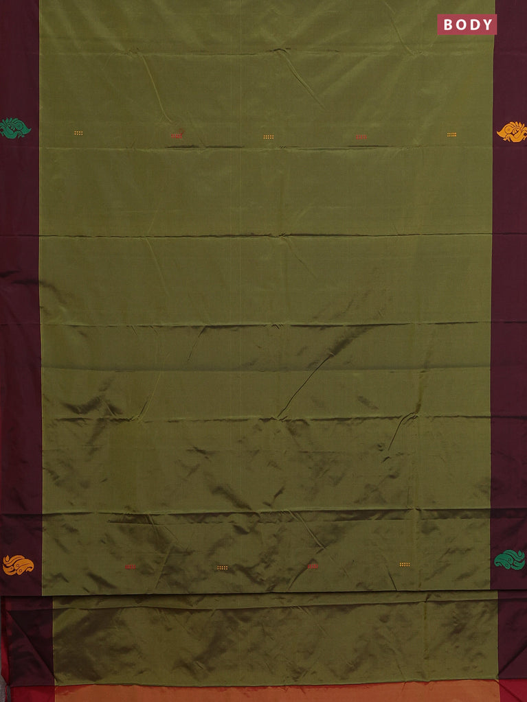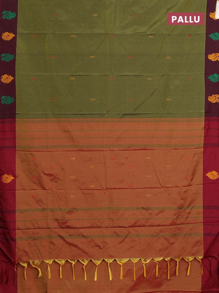 Arani semi silk saree sap green and dual shade of maroon with thread woven buttas and thread woven butta border