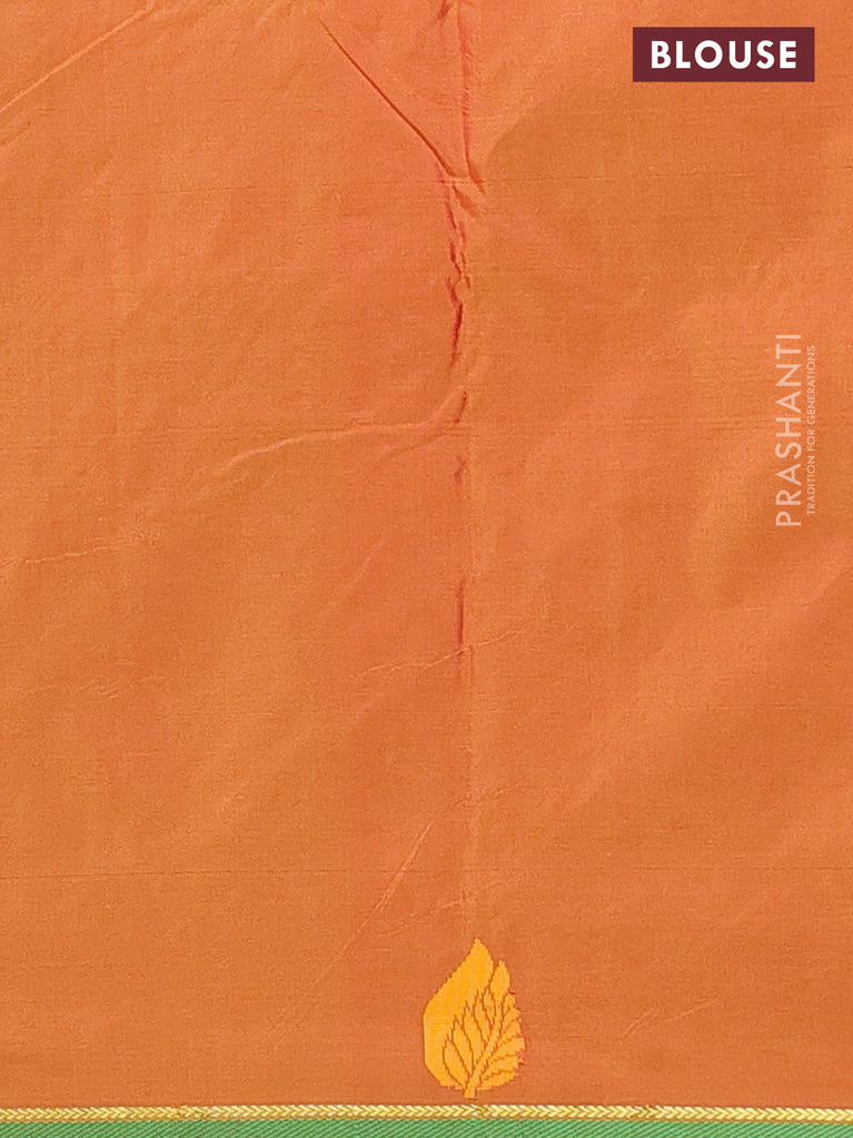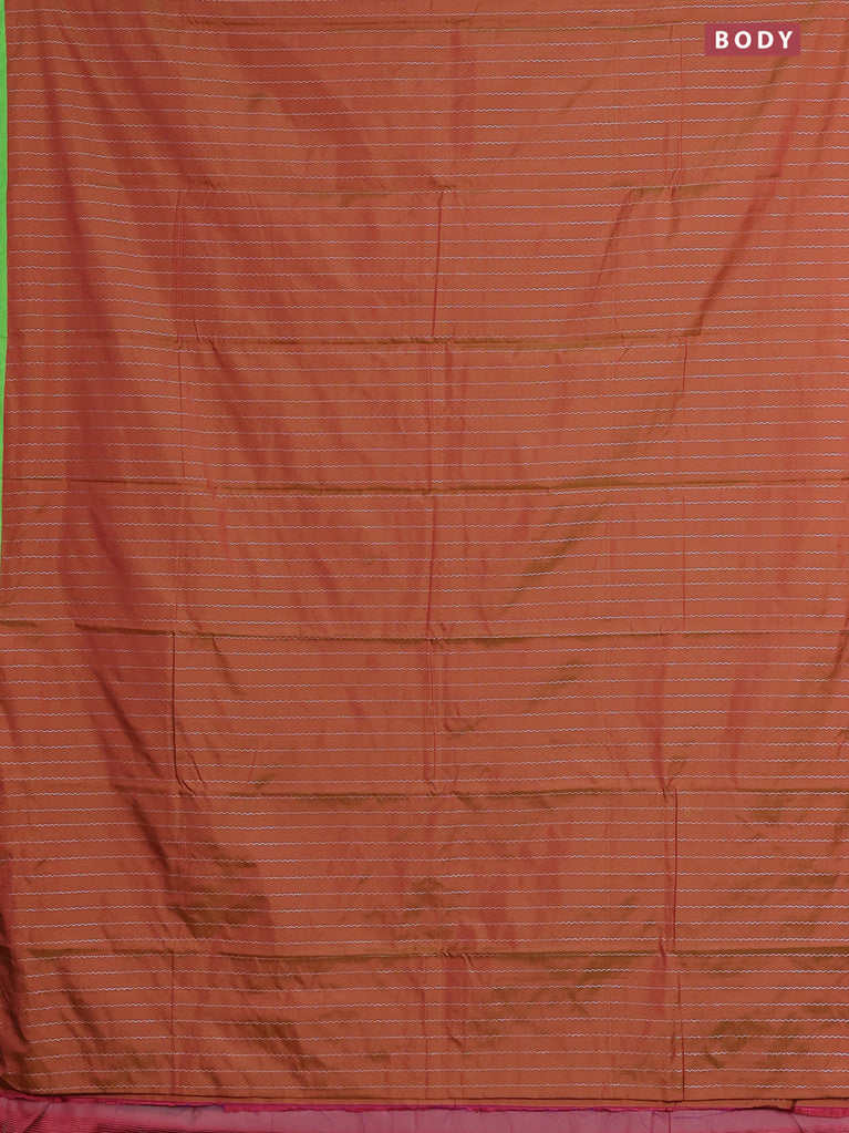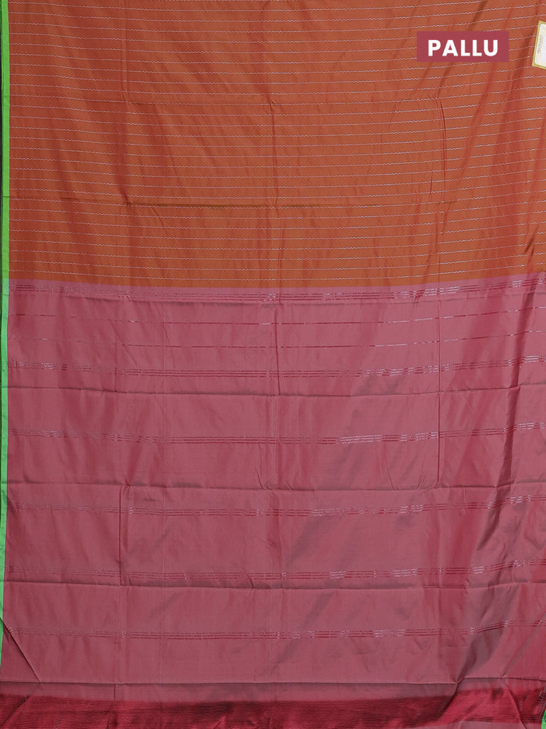 Arani semi silk saree rust shade and light green with allover silver zari weaves and piping border