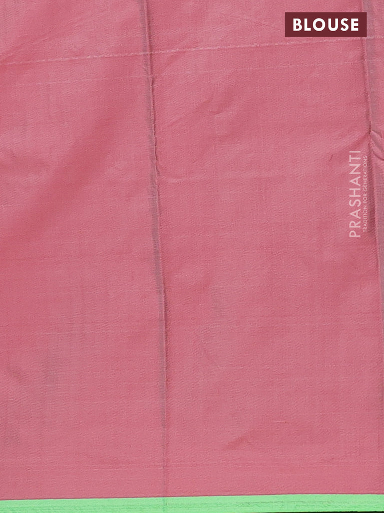 Arani semi silk saree sap green and dual shade of yellowish pink with thread woven buttas and thread woven butta border
