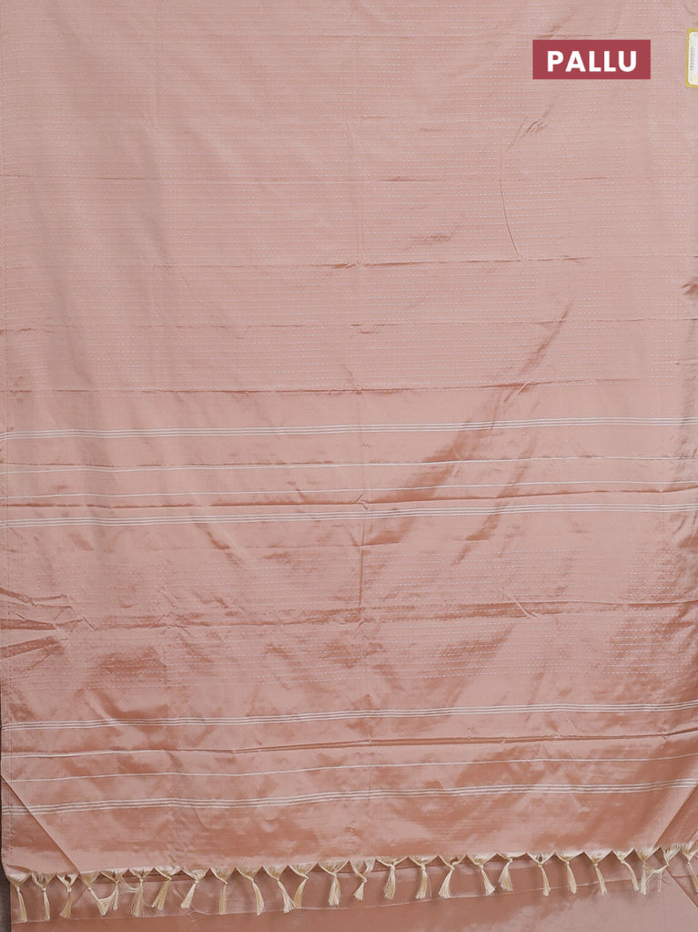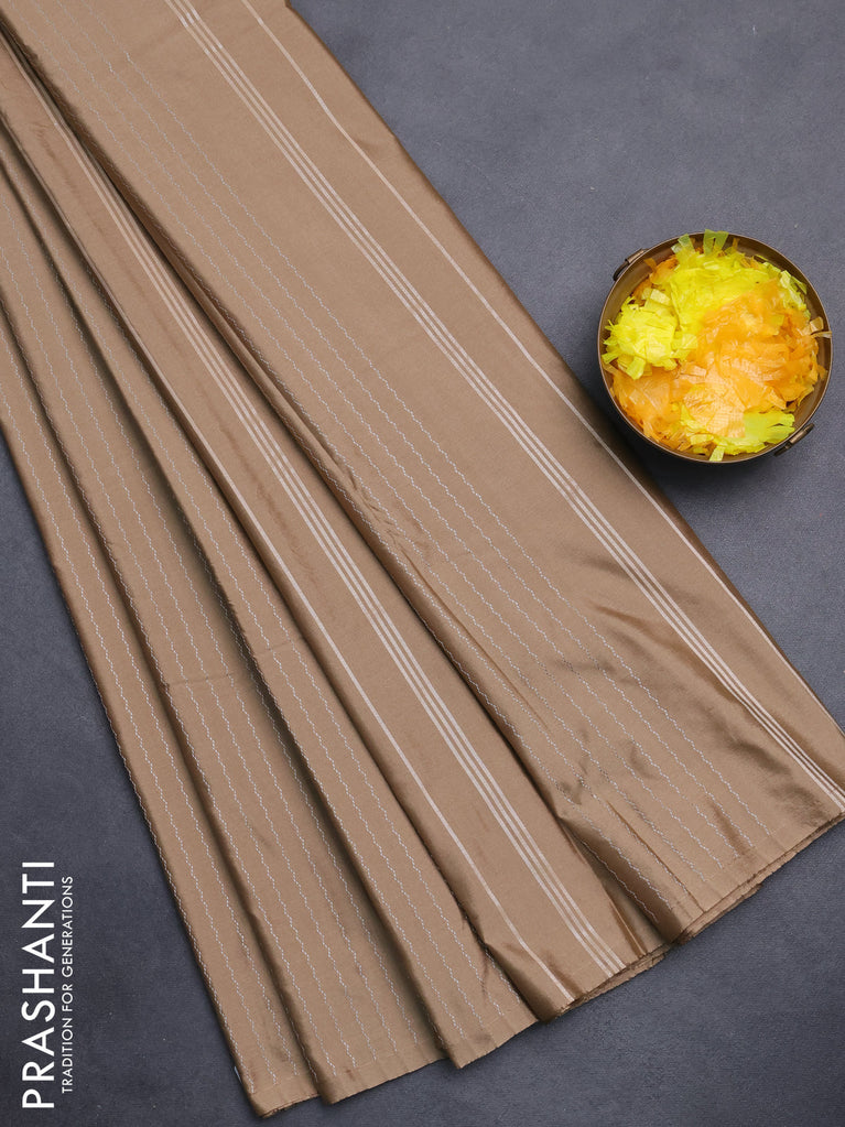 Arani semi silk saree sandal with allover silver zari weaves in borderless style