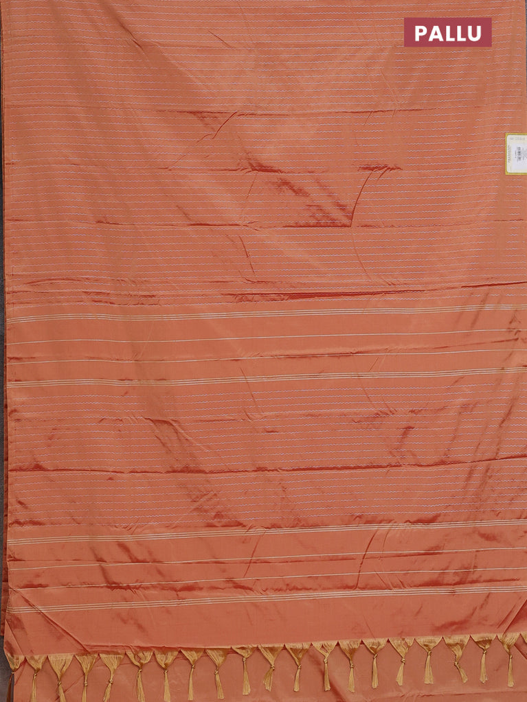 Arani semi silk saree rust shade with allover silver zari weaves in borderless style