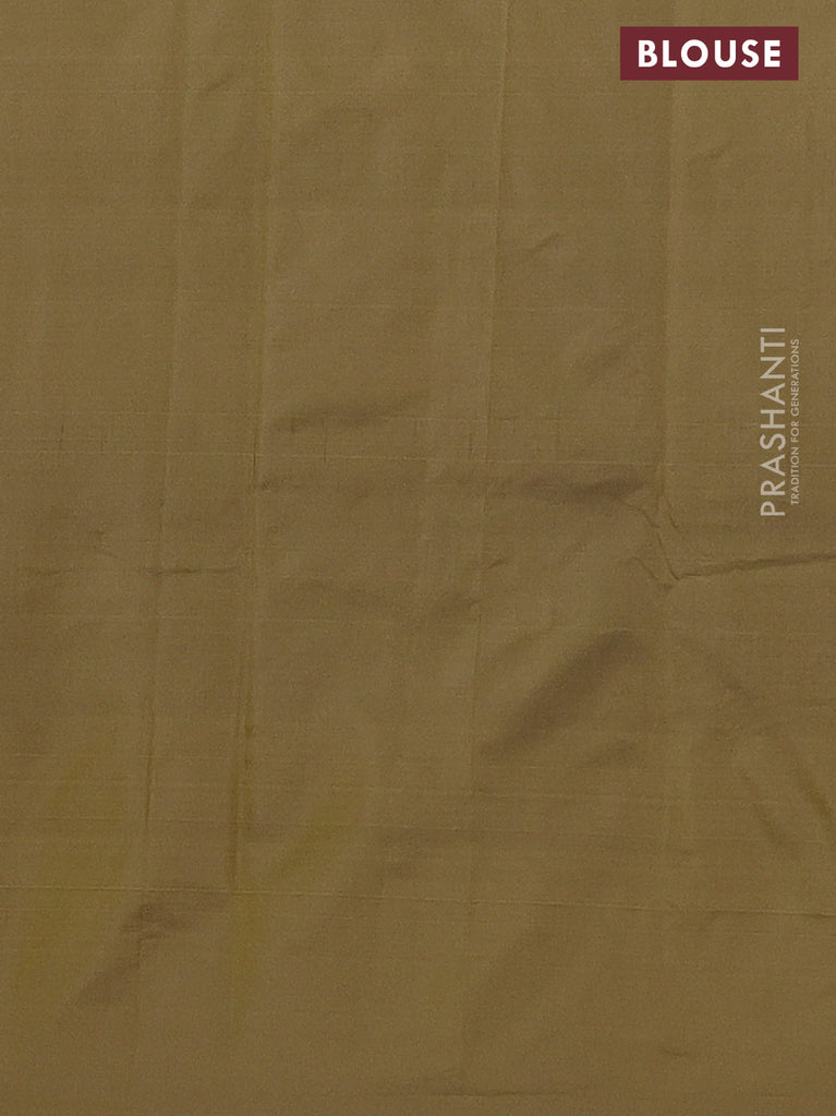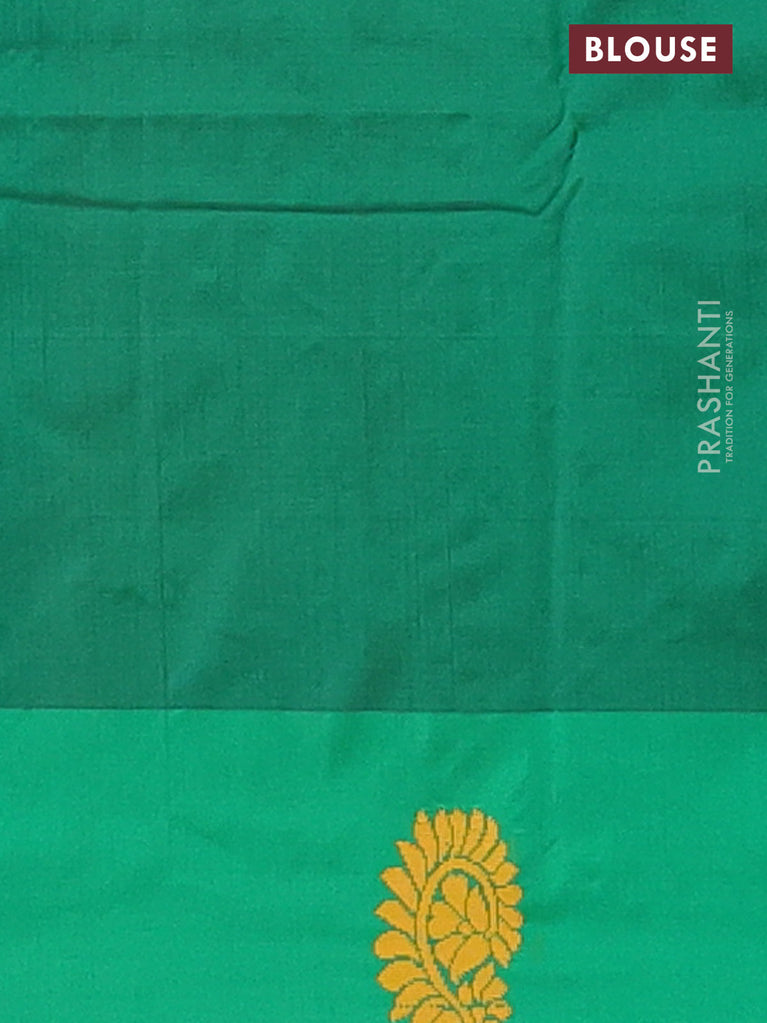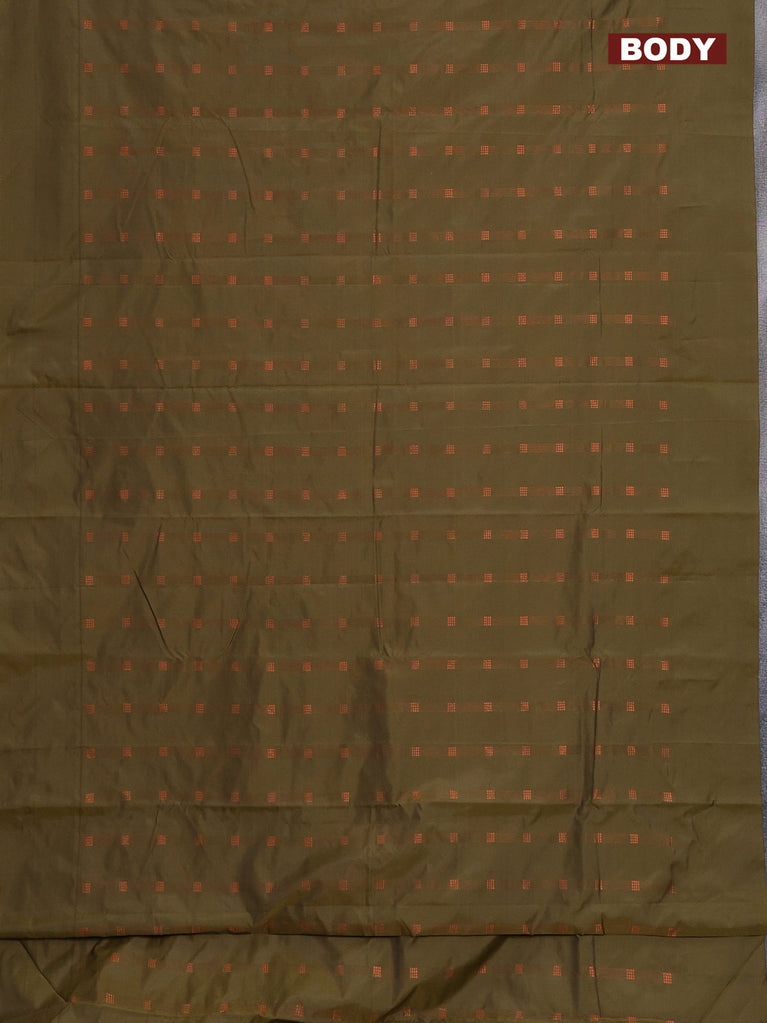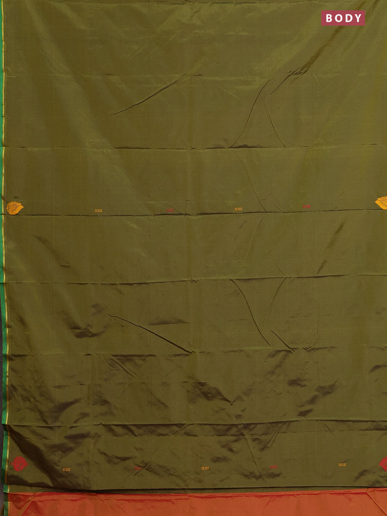Arani semi silk saree sap green with copper zari woven buttas in borderless style