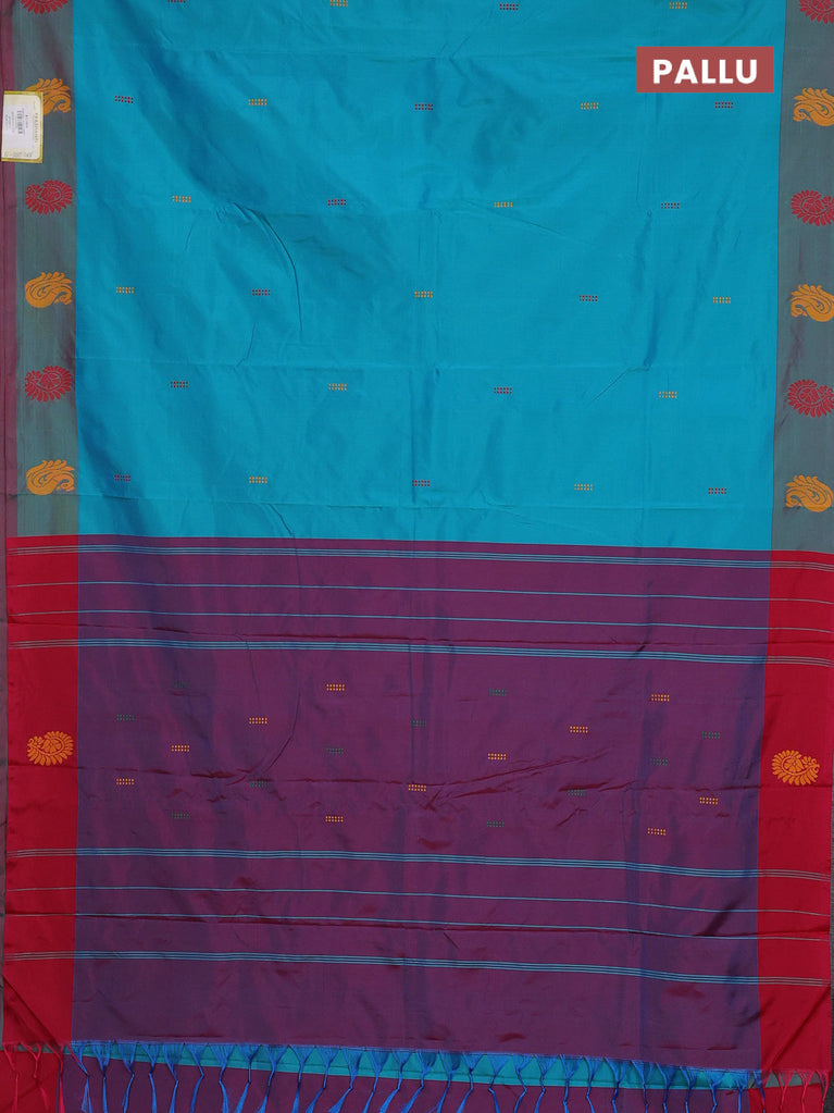 Arani semi silk saree teal blue shade and pink with thread woven buttas and thread woven butta border