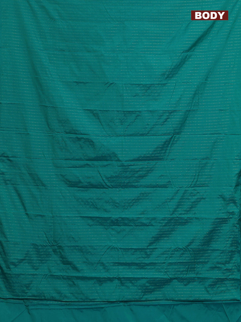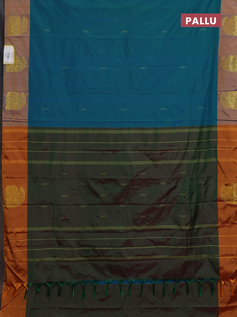 Arani semi silk saree teal green and dark green with allover silver & copper zari weaves and zari woven border