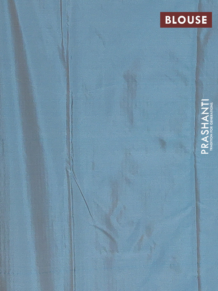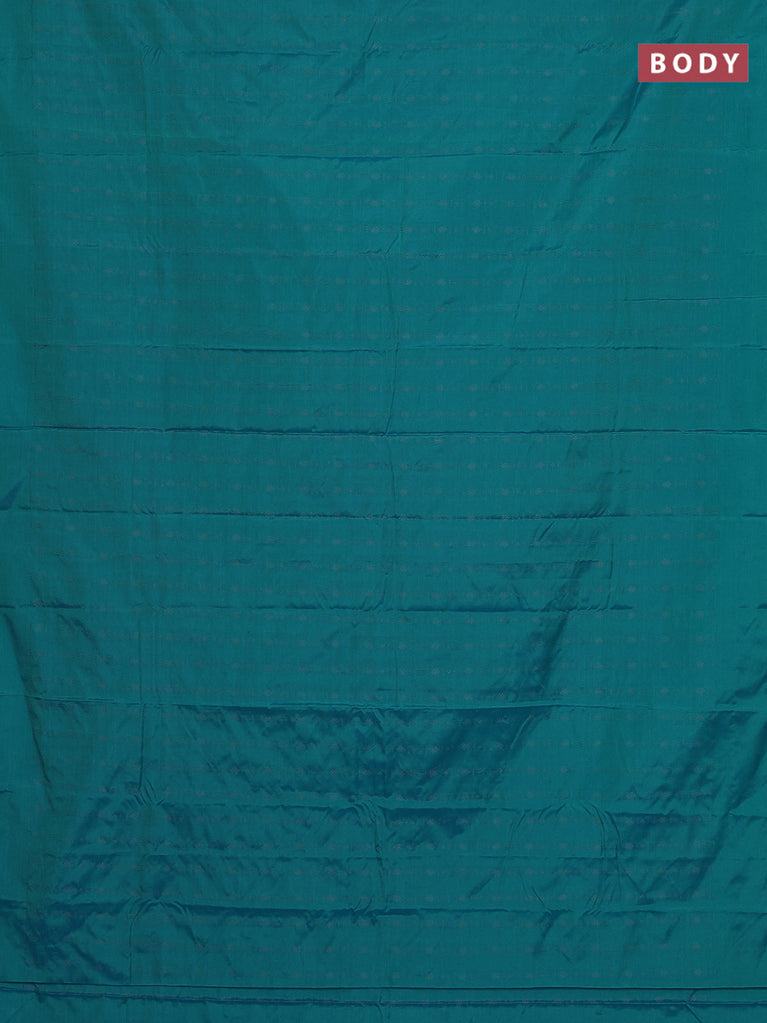 Arani semi silk saree teal blue shade with allover zari weaves in borderless style