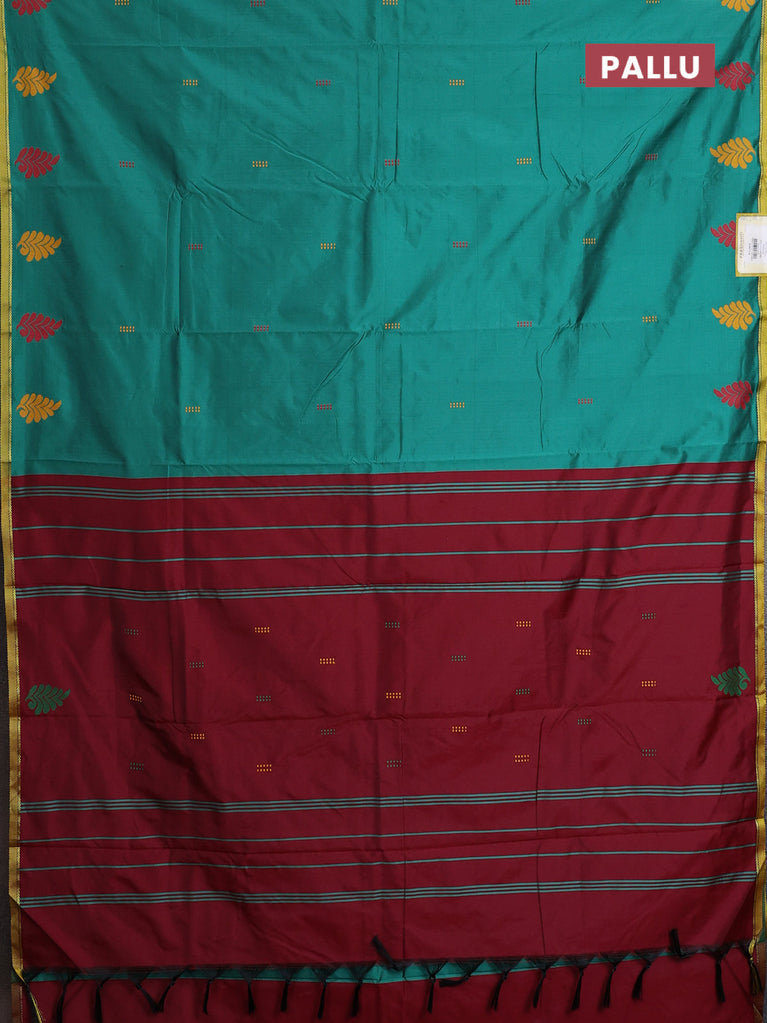 Arani semi silk saree teal green and maroon with thread woven buttas and piping border