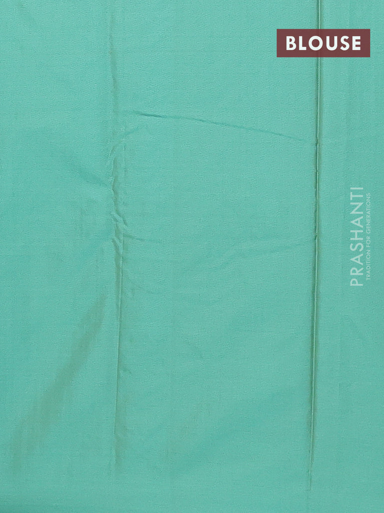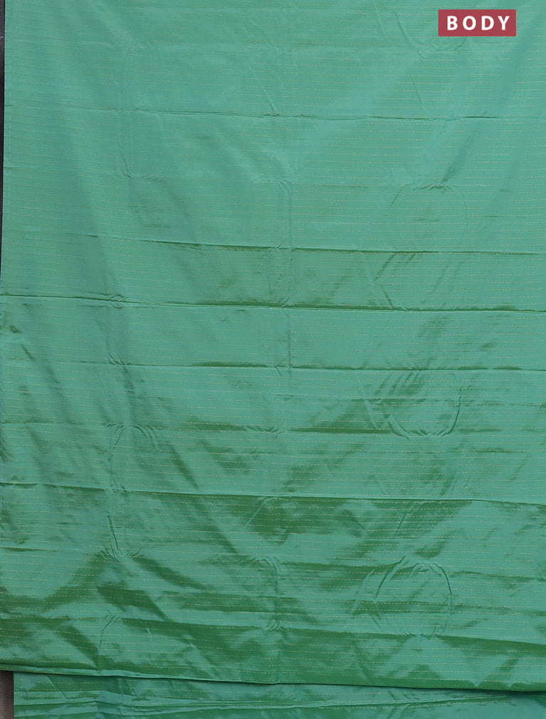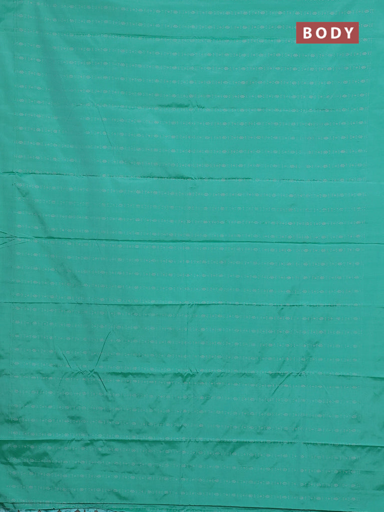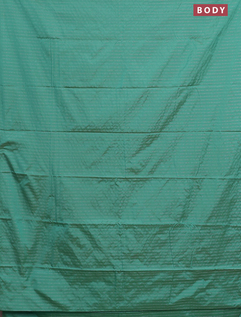 Arani semi silk saree teal green with allover zari weaves in borderless style
