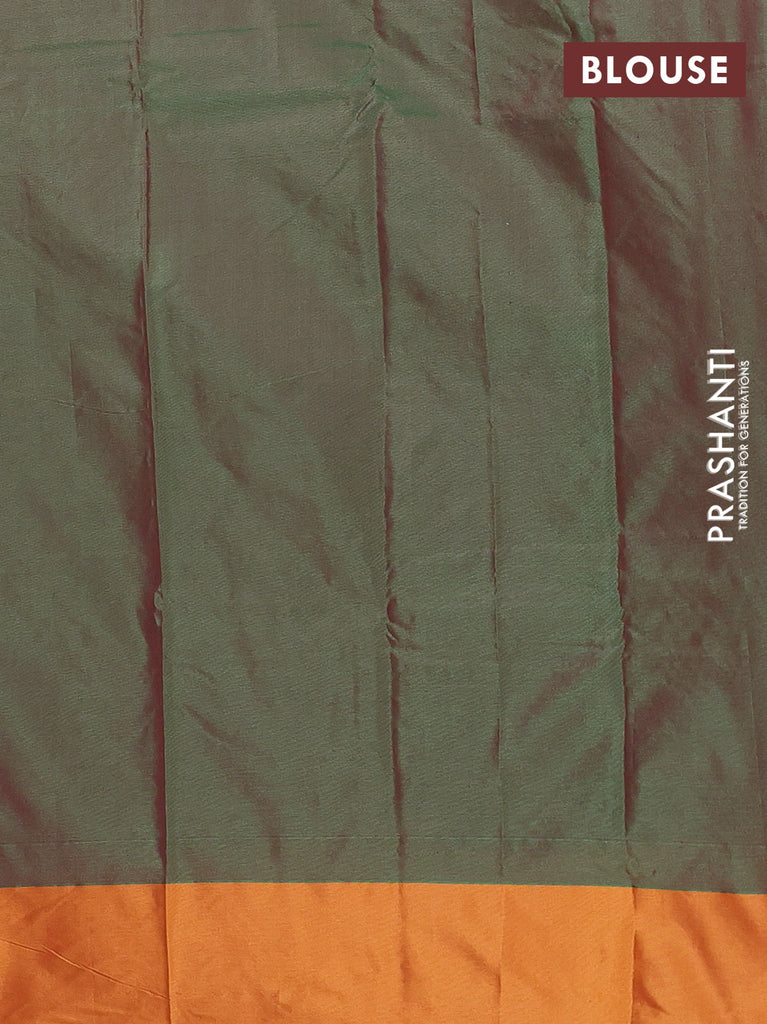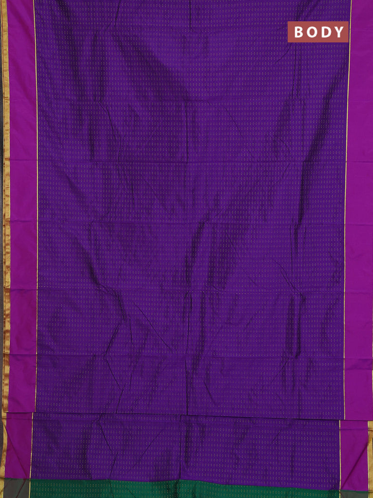 Arani semi silk saree violet and dual shade of green with copper zari woven buttas and zari woven butta border