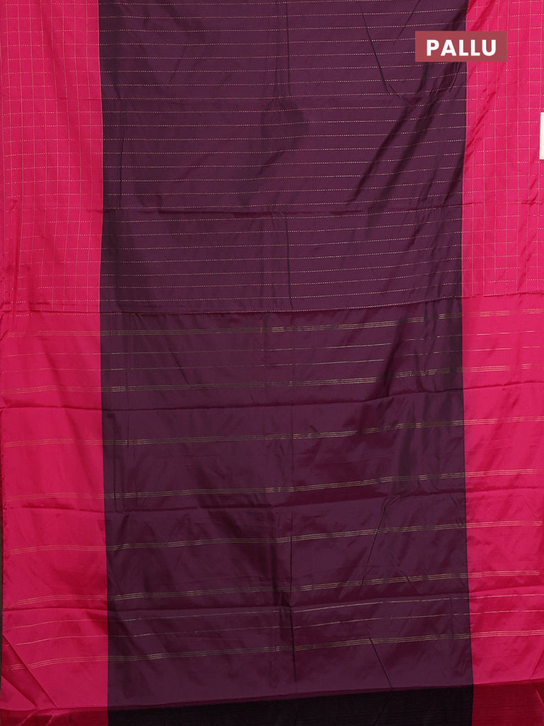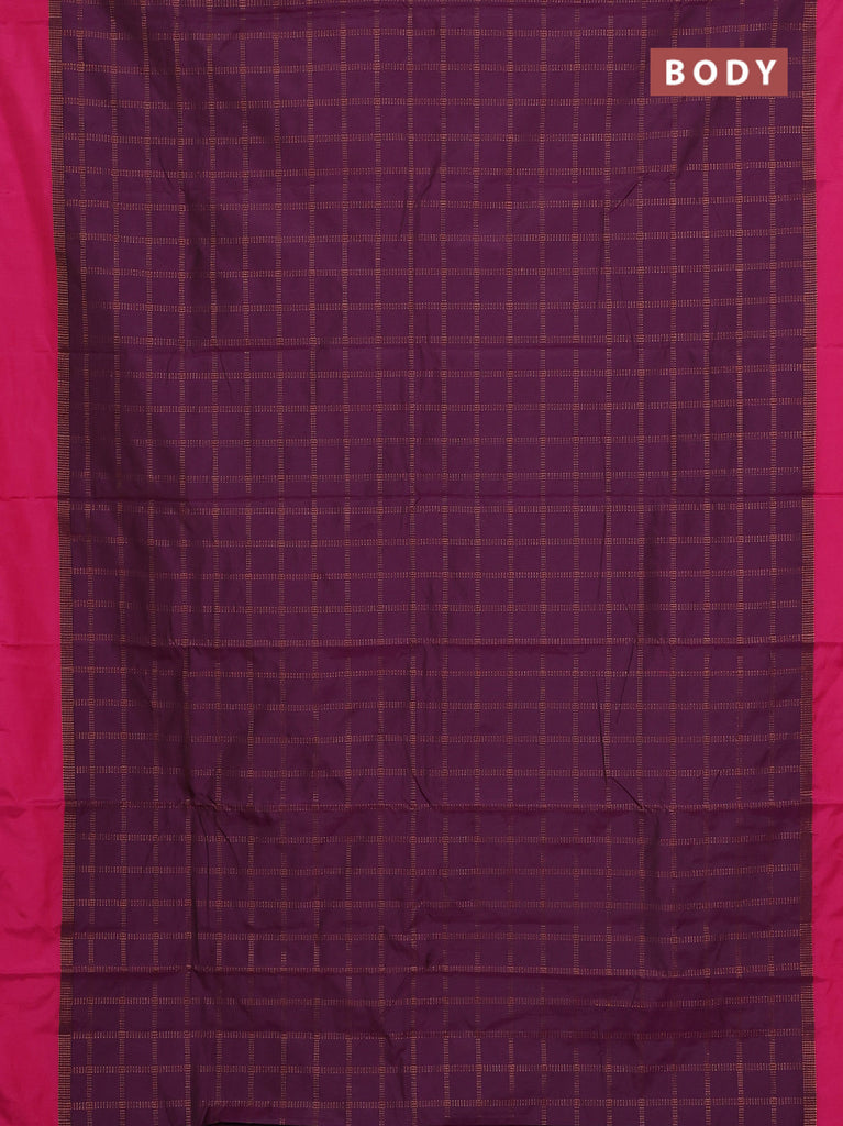 Arani semi silk saree wine shade and pink with allover copper zari checked pattern and copper zari woven simple border