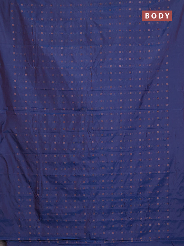 Arani semi silk saree dual shade of blue with allover copper zari weaves in borderless style