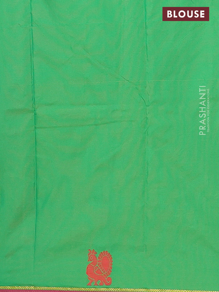 Arani semi silk saree dual shade of green with zari woven buttas in borderless style