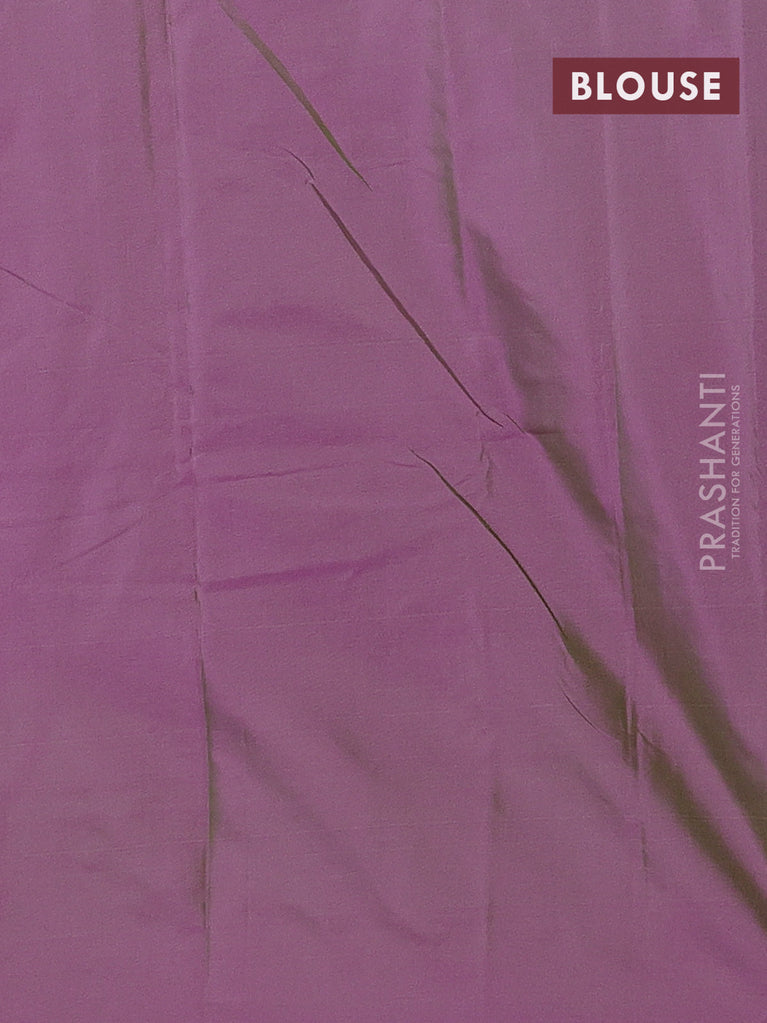 Arani semi silk saree dual shade of greenish violet with allover silver zari weaves in borderless style