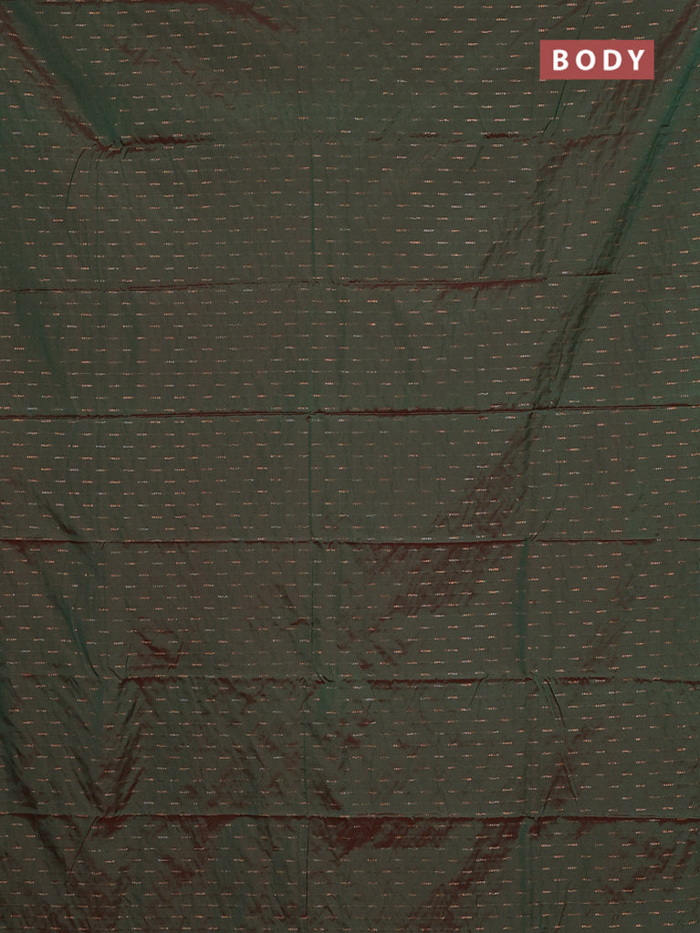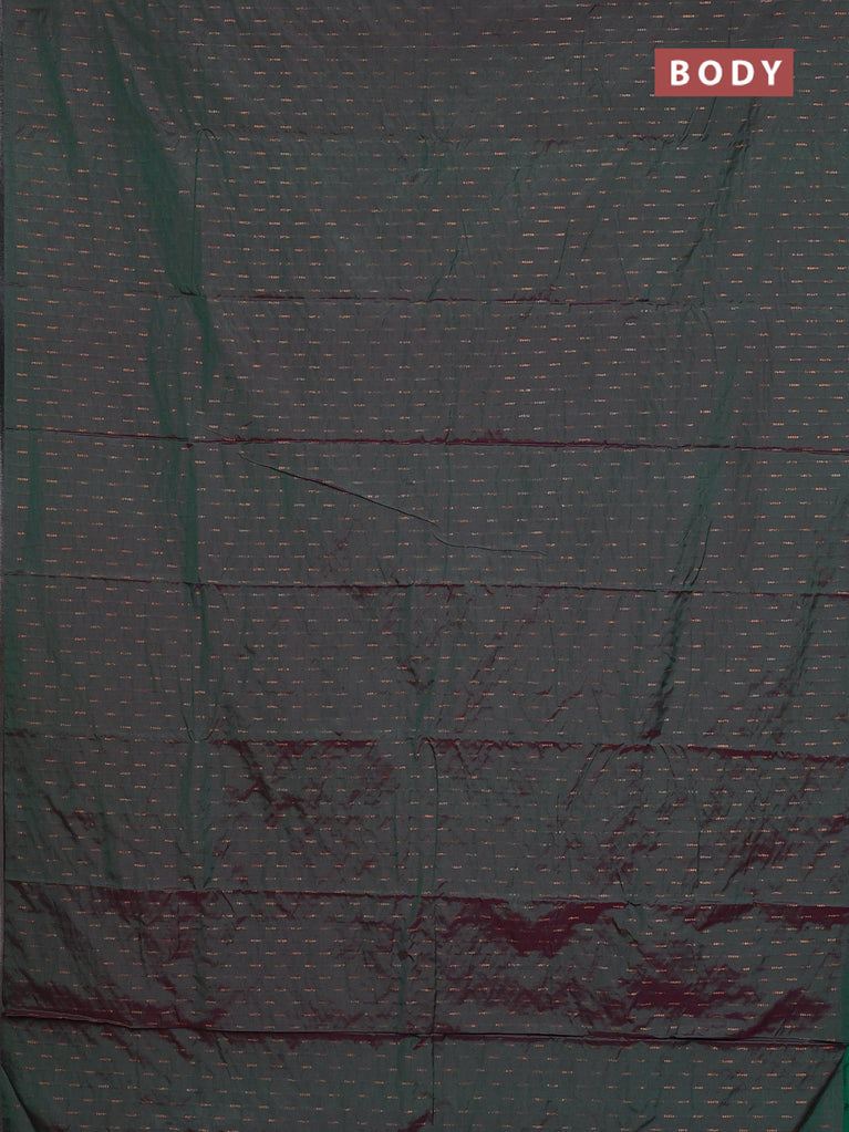 Arani semi silk saree dual shade of greenish maroon with allover silver zari weaves in borderless style