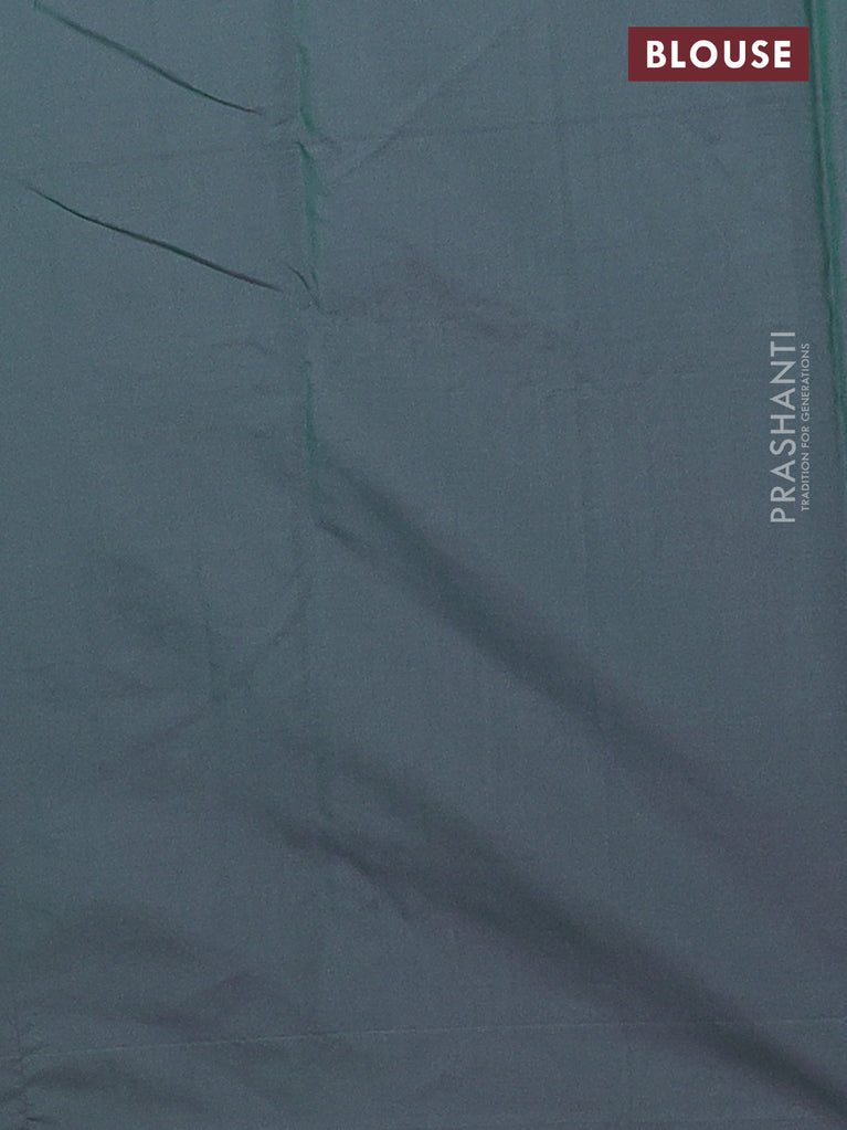 Arani semi silk saree dual shade of greyish green with allover silver zari weaves in borderless style