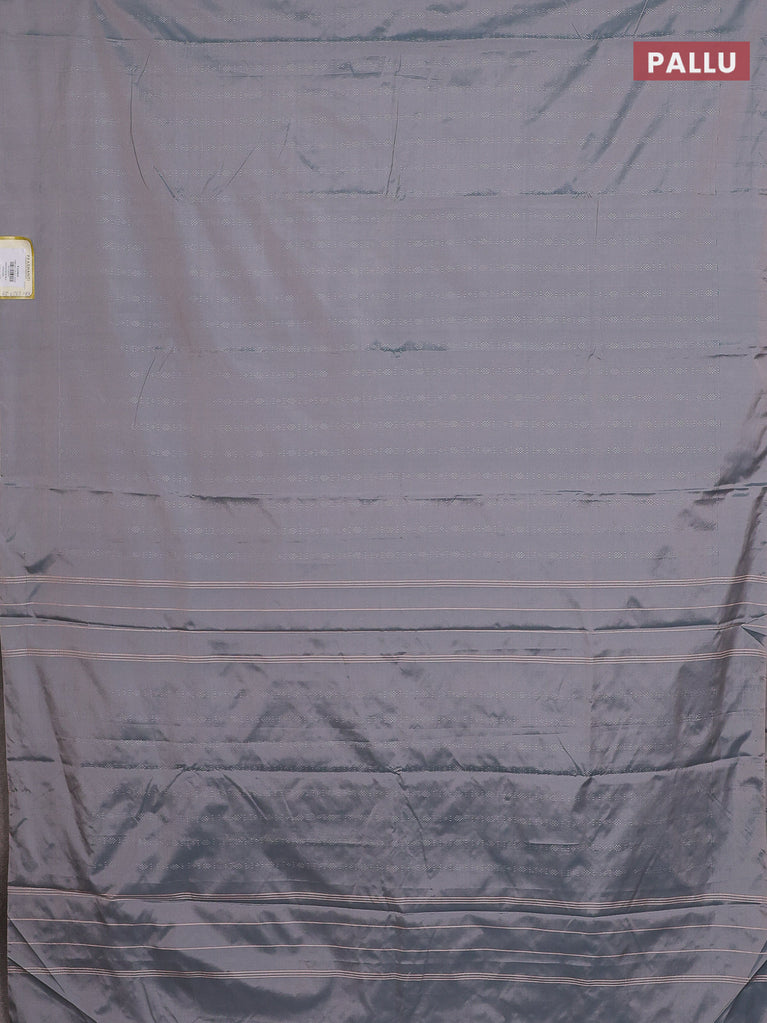 Arani semi silk saree dual shade of grey with allover silver zari weaves in borderless style