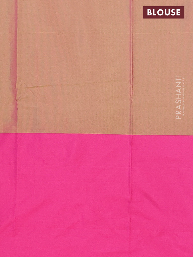 Arani semi silk saree dual shade of greenish pink and teal blue with allover copper zari weaves and copper zari woven border