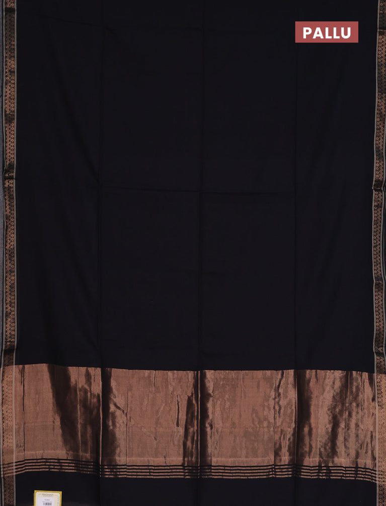Bengal soft cotton saree black and violet with plain body and zari woven border